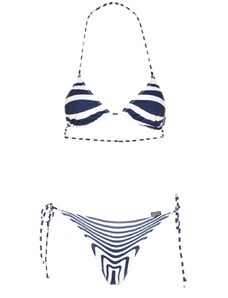 The Frolic exclusive picot trim bow detail scoop neck bikini top co-ord in blue gingham-Multi