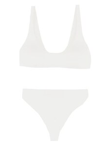 4th & Reckless x Luana Barron crinkle bead detail high leg bikini bottom co-ord in white