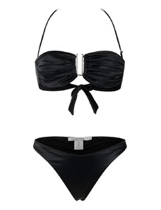 4th & Reckless underwire bikini top with pearl and shell charm detail co-ord in black