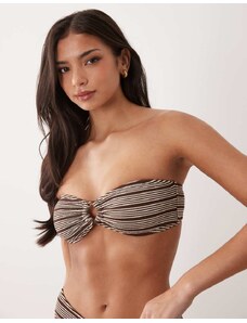 The Frolic exclusive textured bandeau resin ring bandeau top in brown & cream stripe-Multi