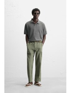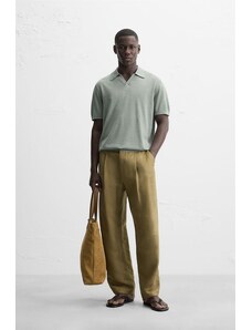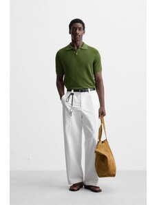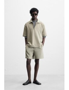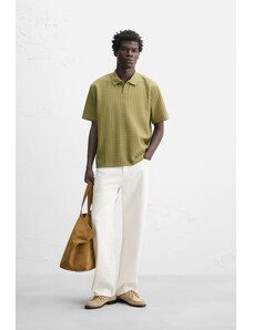 ZARA TEXTURED POLO SHIRT Pistachio S