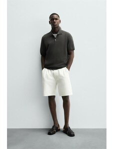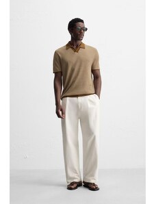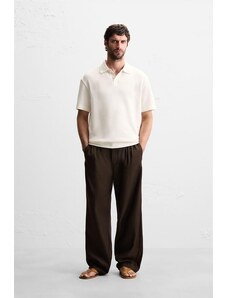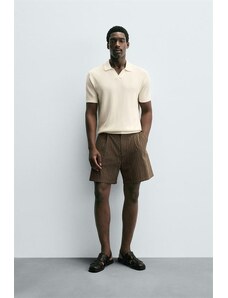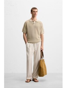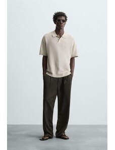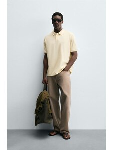 ZARA TEXTURED KNIT POLO SHIRT Beige M