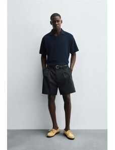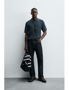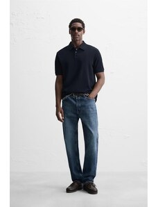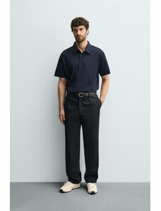 ZARA BASIC TEXTURED POLO SHIRT Navy blue S