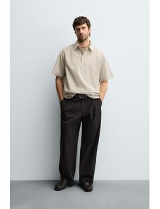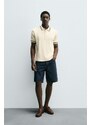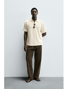 ZARA TEXTURED POLO SHIRT Oyster-white S