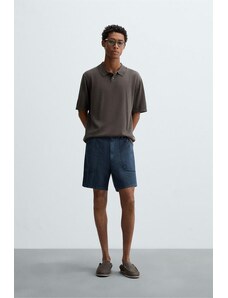 ZARA COTTON/LINEN POLO SHIRT Navy blue S