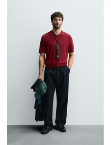 ZARA TEXTURED KNIT POLO SHIRT Bright red M