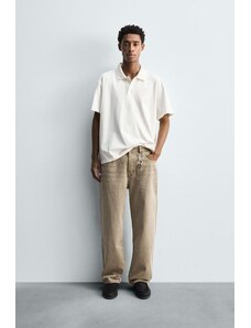 ZARA WASHED REGULAR FIT POLO SHIRT Oyster-white S