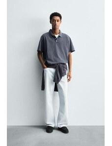 ZARA WASHED RELAXED FIT POLO SHIRT Faded blue S