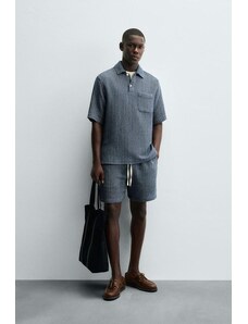 ZARA TEXTURED POLO SHIRT Blue S
