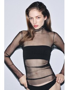 ZARA HIGH NECK TOP WITH POLYAMIDE Black XS-S