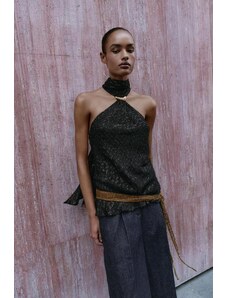ZARA ZW COLLECTION LACE HALTER TOP Black XS
