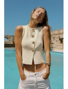 ZARA KNIT TOP WITH GOLD BUTTONS Light beige S