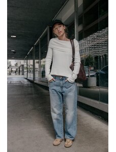 ZARA SOFT RIBBED ASYMMETRIC TOP Ecru S