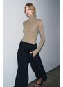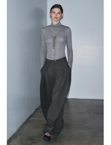 ZARA RIBBED HIGH NECK TOP Pearl grey S