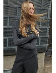 ZARA DRAPED T-SHIRT WITH LYOCELL Dark grey marl S