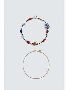ZARA PACK OF 2 FABRIC BEADED BRACELETS Multicoloured M