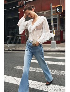 ZARA BLOUSE WITH LACE TRIM AND RUFFLES White XS