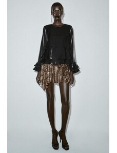 ZARA SHIMMER FABRIC RUFFLED BLOUSE Black XS