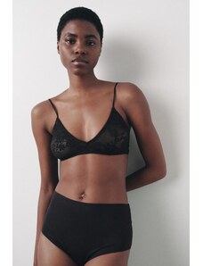 ZARA TRIANGLE BRA WITH CONTRAST LACE Dark brown XS