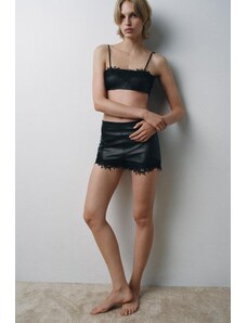 ZARA 100% LEATHER LACE BRALETTE Black S