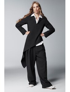 ZARA FLOWING WIDE-LEG PLEATED TROUSERS Black 30