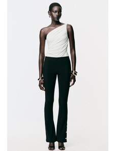 ZARA FLARE LEGGINGS WITH BUTTON HEMS Black S