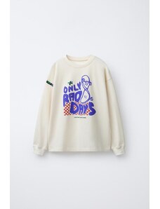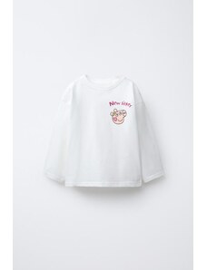 ZARA PRINTED T-SHIRT WITH LABEL Ecru 6-7 years (122 cm)