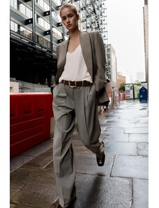 ZARA BELTED STRAIGHT-LEG TROUSERS Grey / Tan XS