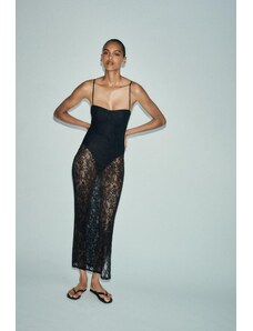 ZARA UNDERWIRE LACE MIDI DRESS Black S