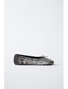 ZARA SEQUIN BALLET FLATS Silver 12,5 (18,9 cm)