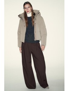 ZARA SHORT WATER-REPELLENT WINDPROOF HOODED ANORAK camel XS