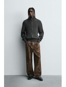 ZARA ABSTRACT PRINT CARPENTER TROUSERS Chocolate 29