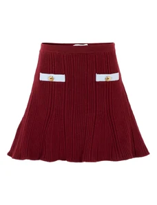 Self-Portrait Kids ribbed-knit button-embellished skirt - Red