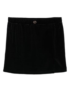 TWINSET Kids logo-plaque velvet skirt - Black
