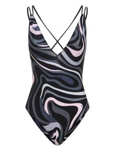 PUCCI Marmo-print cross-back swirl swimsuit - Black