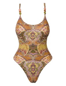 SOFIA ERHAN Aurelia beaded printed swimsuit - Neutrals